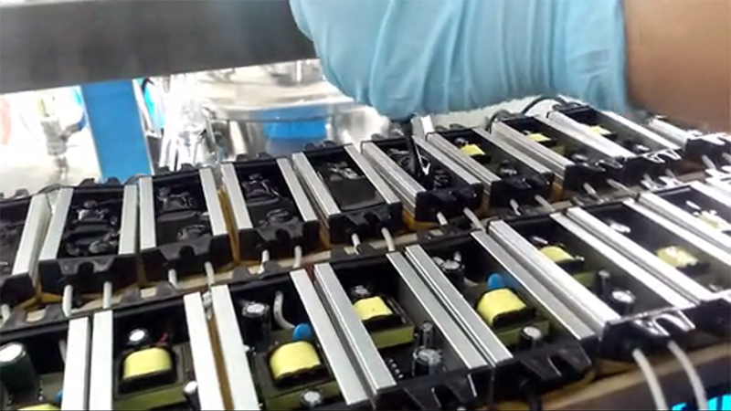 電子灌封膠有雙組份,也有單組份,本案例客戶深圳電子科技有限公司使用我司雙組份電子灌封膠進(jìn)行電源灌模密封。采用機(jī)器進(jìn)行真空環(huán)境下操作配比,將配比后的電子灌封膠經(jīng)過管道輸出就可以用于電源灌封使用。下面是客戶生產(chǎn)視頻拍攝由于手機(jī)拍攝像素問題導(dǎo)致不清晰,請諒解。